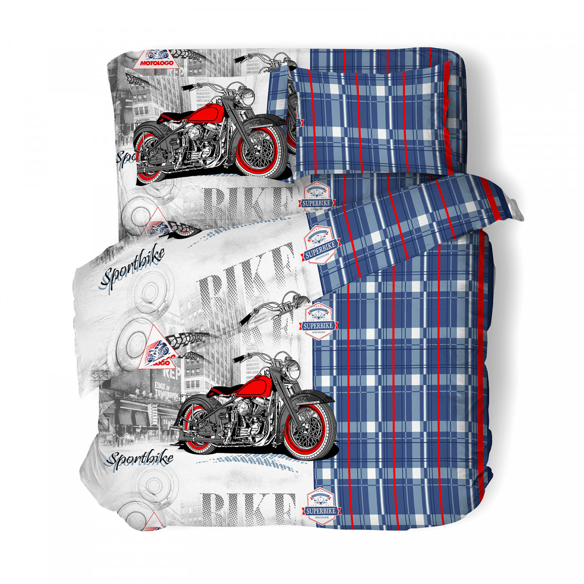 КПБ Бязь детская коллекция 100% хлопок Спорт байк синий